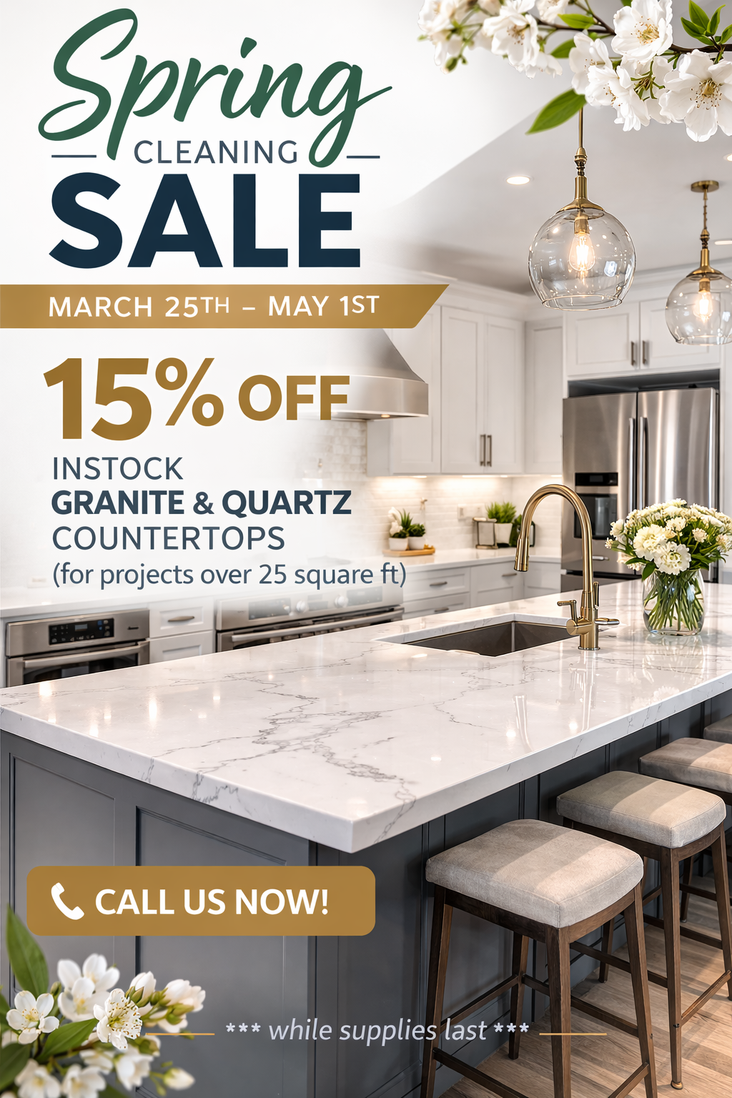 Numerous Quartz, Granite, and Marble Colors in stock.